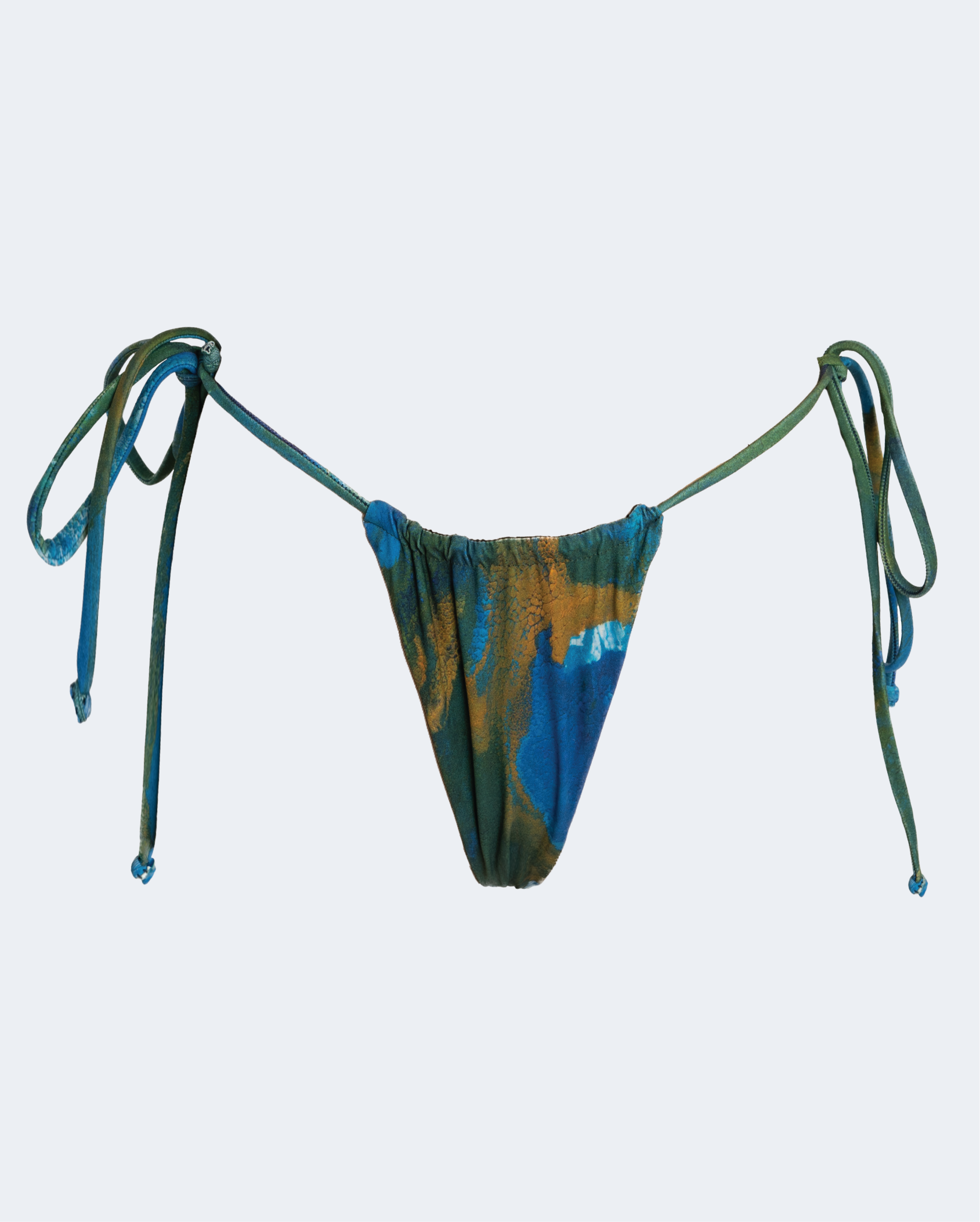 Adjustable drawstring bikini bottom with dreamy originally hand-painted print.