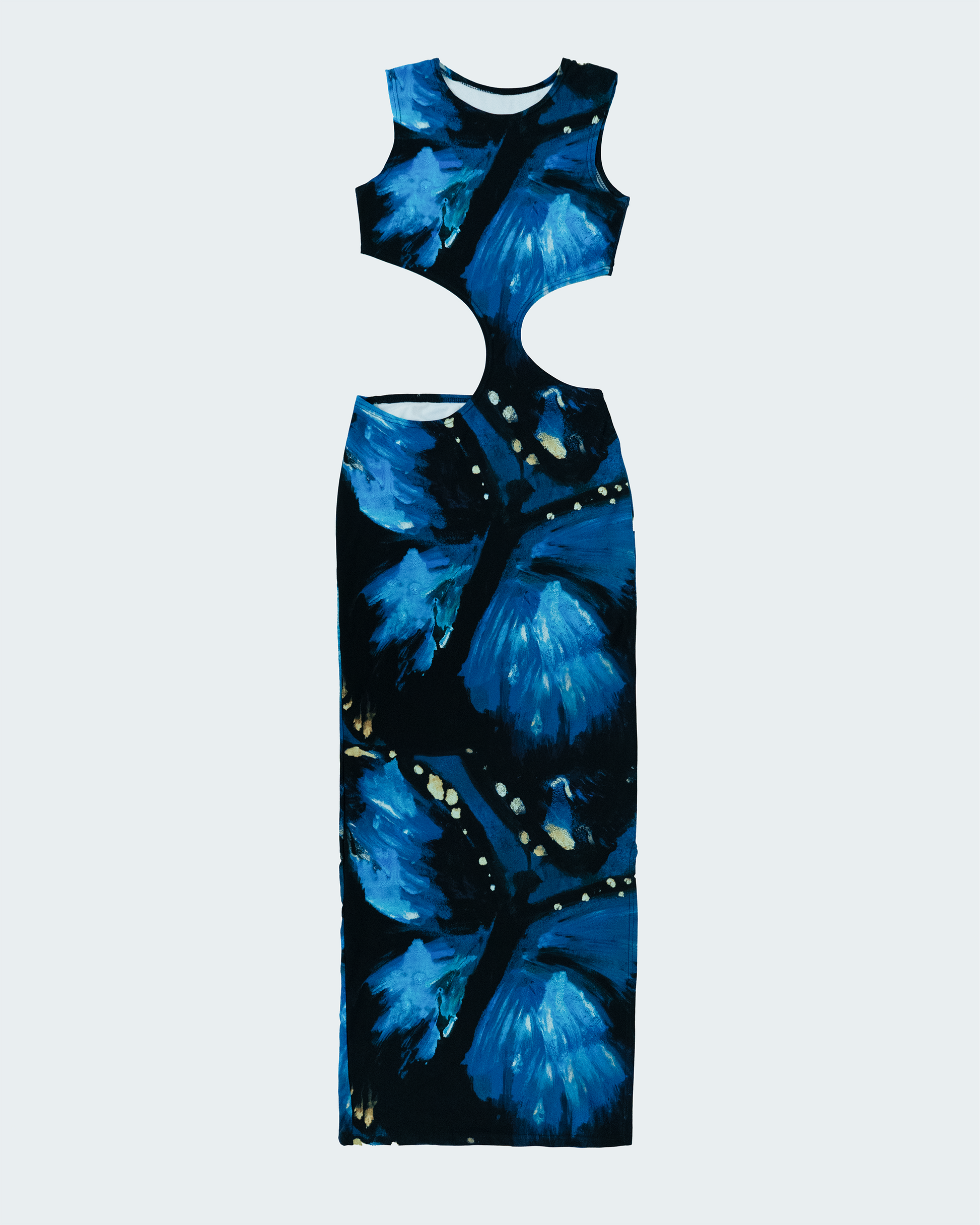 Long Eclipse Cut-Out Gown - Blue Butterfly
