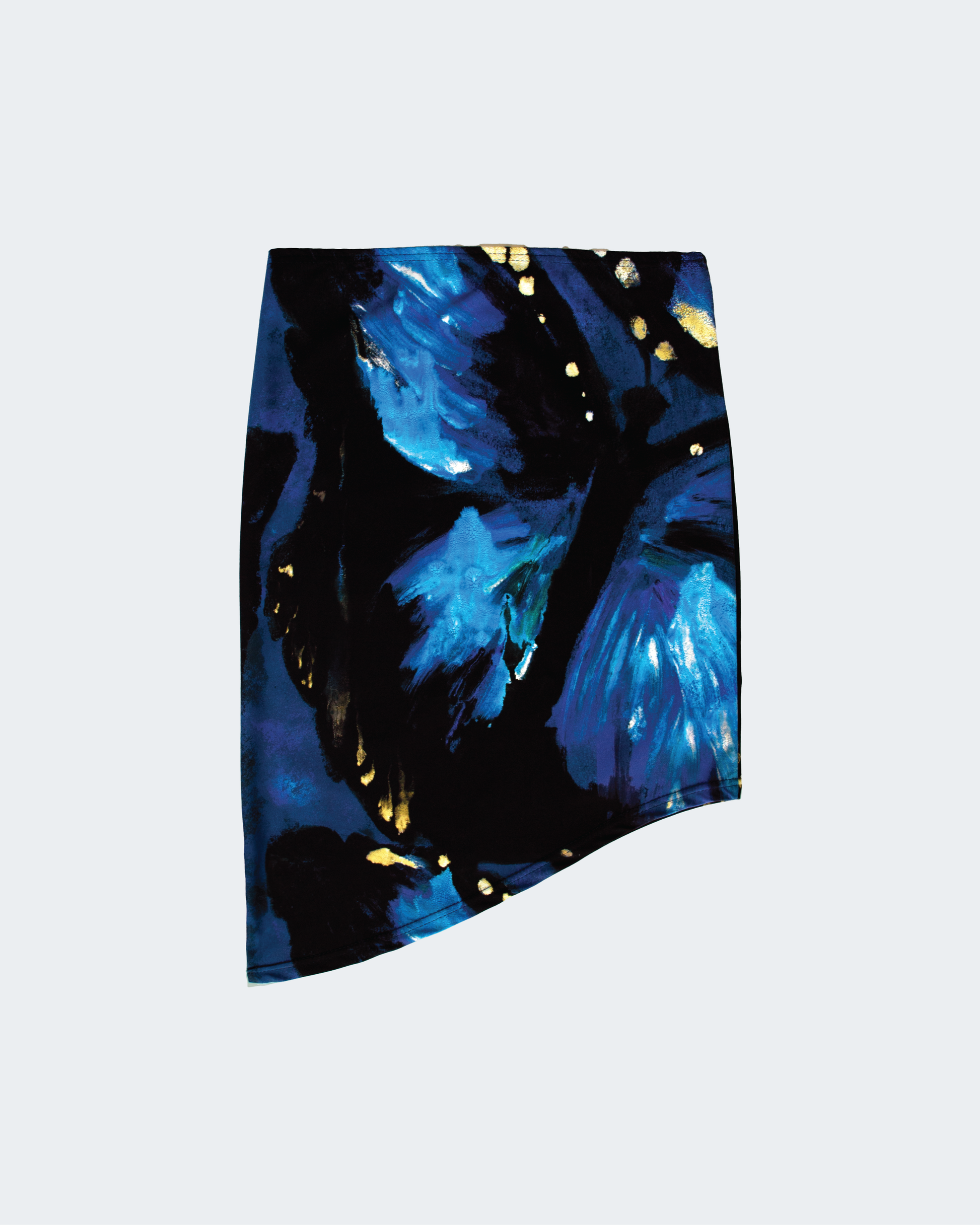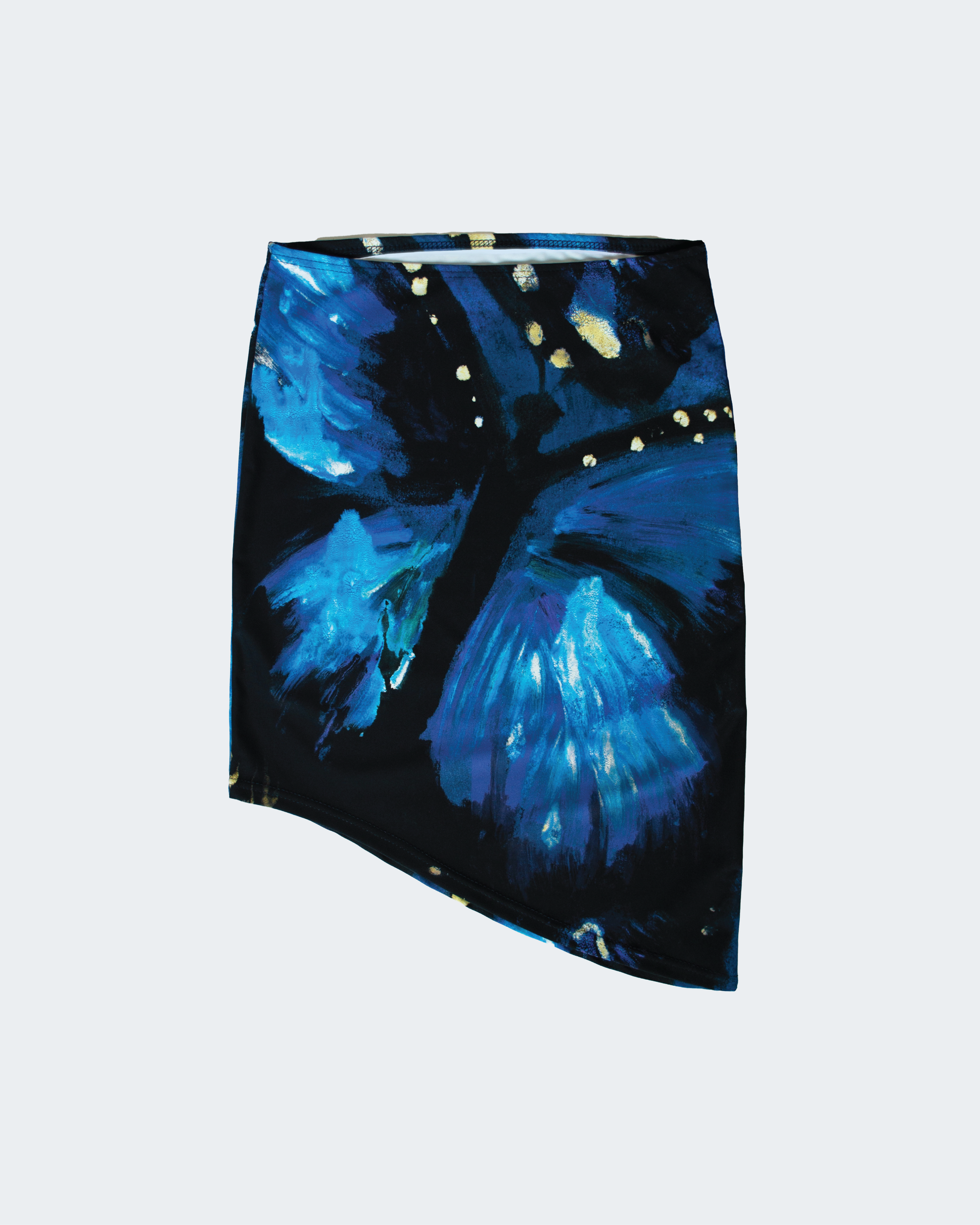 Meet Shoreline, a versatile midi skirt that can be worn low or high-rise in our Blue Butterfly print. This skirt is made with recycled fabric, cut and sewn in Los Angeles, CA, and made-to order.